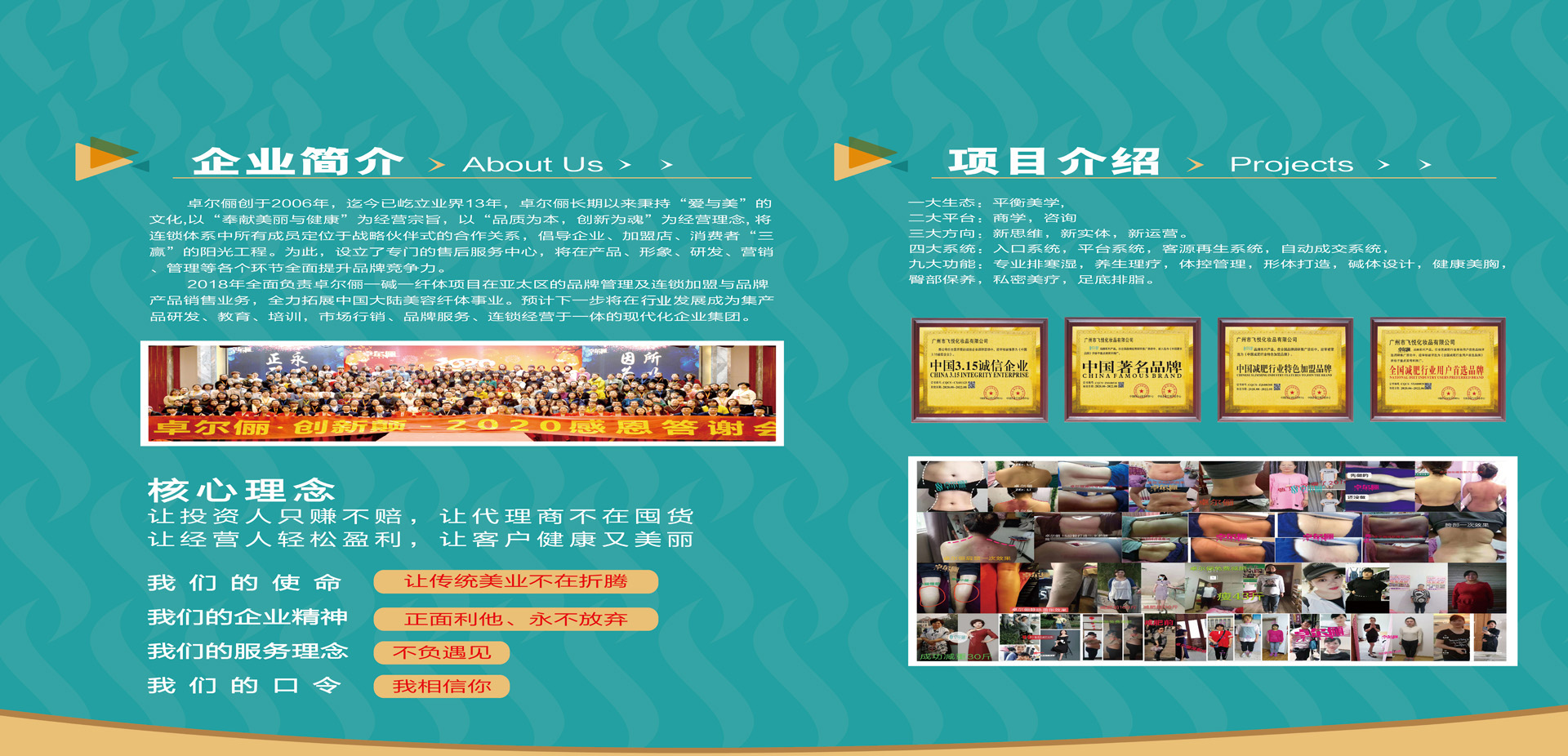 卓爾儷創(chuàng)于2006年,迄今己屹立業(yè)界13年,卓爾儷長(zhǎng)期以來(lái)秉持“愛(ài)與美”的文化,以“奉獻(xiàn)美麗與健康”為經(jīng)營(yíng)宗旨,以“品質(zhì)為本,創(chuàng)新為魂”為經(jīng)營(yíng)理念,將連鎖體系中所有成員定位于戰(zhàn)略伙伴式的合作關(guān)系,倡導(dǎo)企業(yè)、加盟店、消費(fèi)者“三贏(yíng)”的陽(yáng)光工程。為此,設(shè)立了專(zhuān)門(mén)的售后服務(wù)中心,將在產(chǎn)品、形象、研發(fā)、營(yíng)銷(xiāo)、管理等各個(gè)環(huán)節(jié)全面提升品牌競(jìng)爭(zhēng)力。